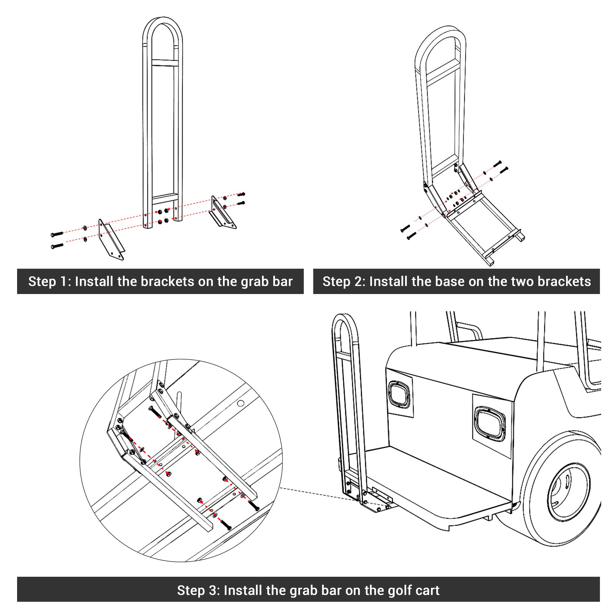 - Easy to Install - Comes with all the mounting hardware for easy installation, you just need to assemble the grab bar with the base and brackets, and then install the whole kit on your golf cart by screwing