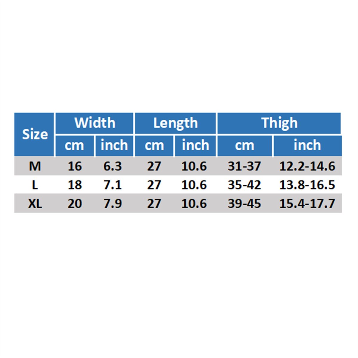 * Size: XL----Width:20cm/7.9"----Length:27cm/10.6"----Thigh:39-45cm/15.4-17.7"